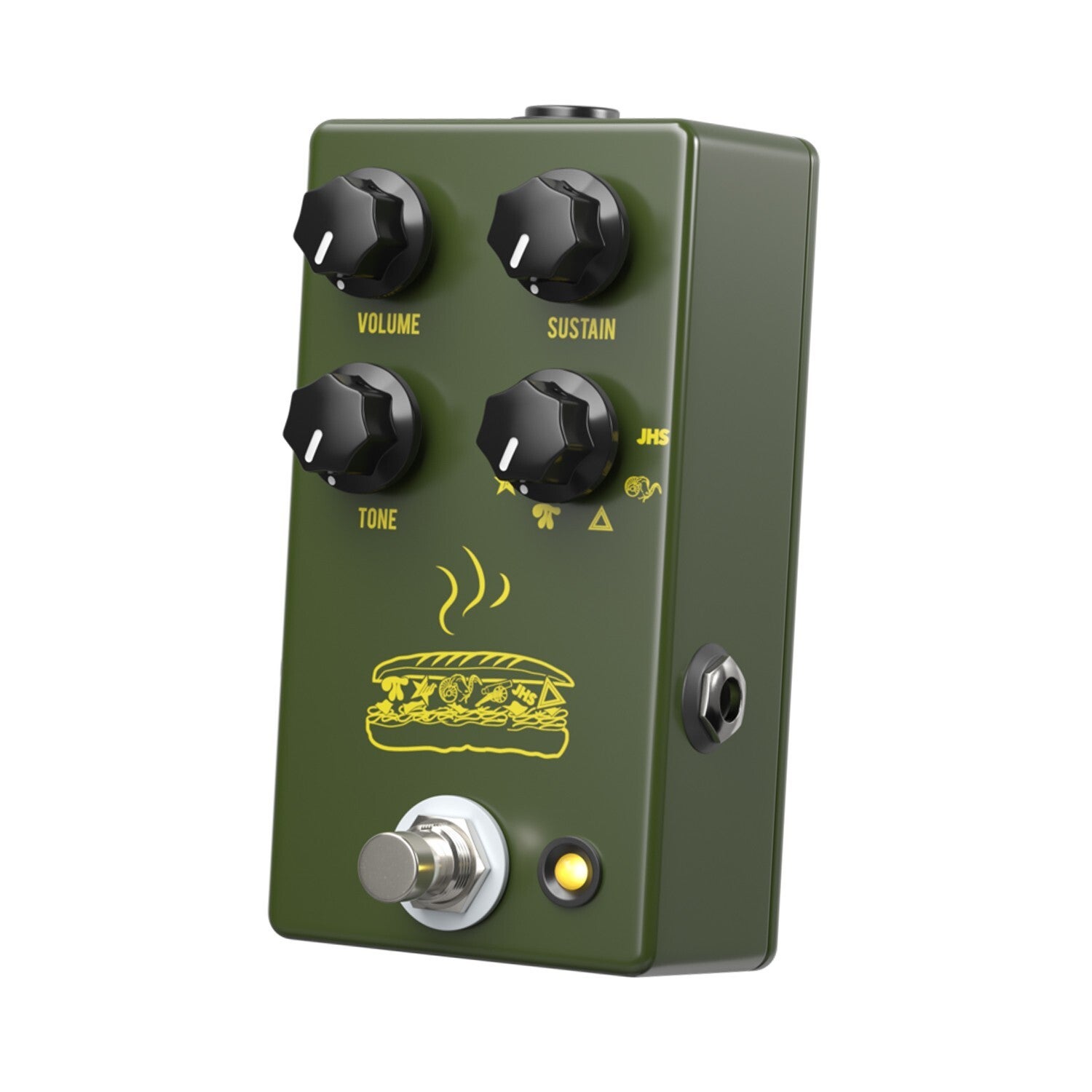 MUFFULETTA ARMY GREEN - Distorsore/Fuzz per chitarra - Un'enciclopedia della saturazione Fuzz-style, con 6 diverse voci, per altrettante versioni classiche del Big Muff - Controlli: Volume + Sustain + Tone + Switch Civil War/Russian/The Pi/Triangle/Rams Head/JHS - Switches: On/Off True Bypass - Alimentazione: 9 V - Dimensioni: 5,6x12,2x4 cm.