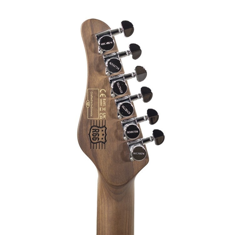 PT R66 SCHECTER VINTAGE SIXTIES S/S - Chitarra elettrica 6 corde - R66 Vintage Series - Struttura: Bolt-on - Corpo: Ontano - Manico: Acero roasted Thin C - Scala: 25,5” (648mm) - Tastiera: Palissandro - 22 tasti X-Jumbo - Radius: 14'' - Capotasto: Graph Tech XL Black Tusq 42mm - Intarsi: Dots - Battipenna: Tartarugato - Pickup: 2x Single Coil Schecter PT Pasadena Vintage VT-1 - Controlli: 1x Tono + 1x Volume + Selettore a 3 posizioni - Ponte: Schecter PT Vintage - Meccaniche: Schecter autobloccanti - Finiture hardware: Cromato - Colore: Sonic blue con paletta matched - Finitura: Lucida.