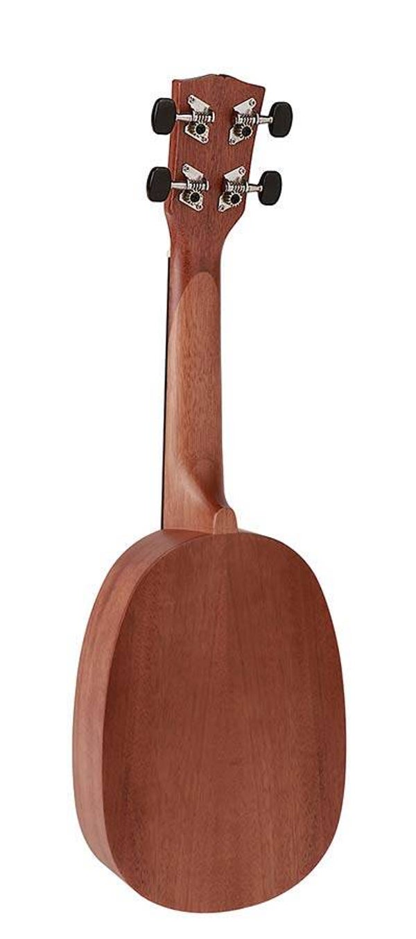 Ukulele soprano modello ananas, color legno, finitura satinata. Dotato di corpo in mogano, tastiera in palissandro e meccaniche per chitarra.