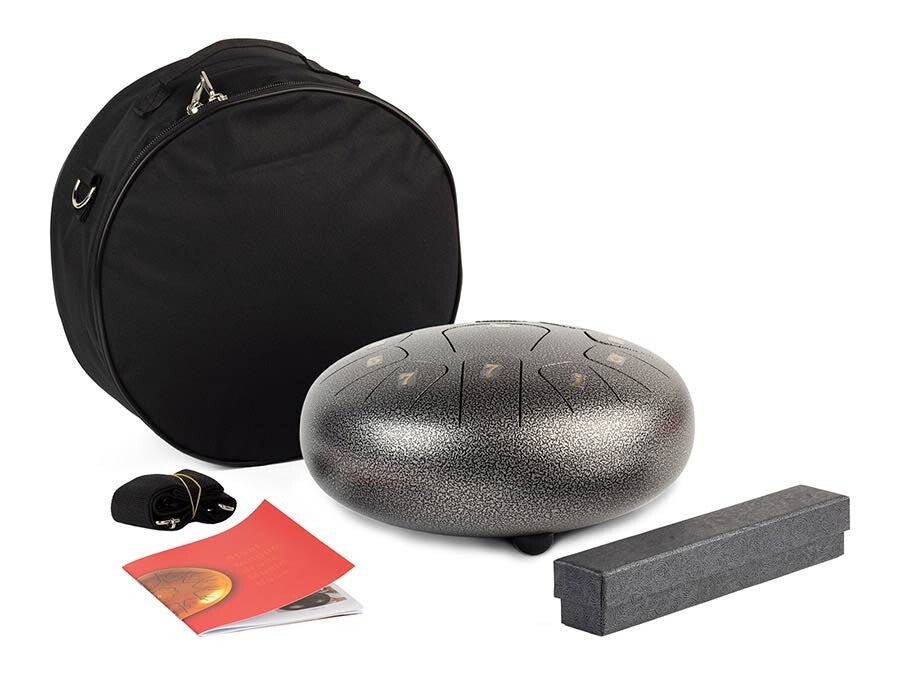 Steel tongue drum 10'', grigio, 11 note, Do maggiore ionico: G3-A3-B3-C4-D4-E4-F4-G4-A4-B4-C5
