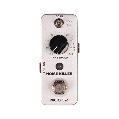 Questo pedale è ideale per il chitarrista che usa molta elaborazione, o per chi utilizza pickup singoli coil. La posizione ideale è al back-end del percorso del segnale, sopprime il rumore di una fila di pedali o di un pickup rumoroso. Il Noise Killer di Mooer fornisce due modalità di funzionamento: hard e soft.